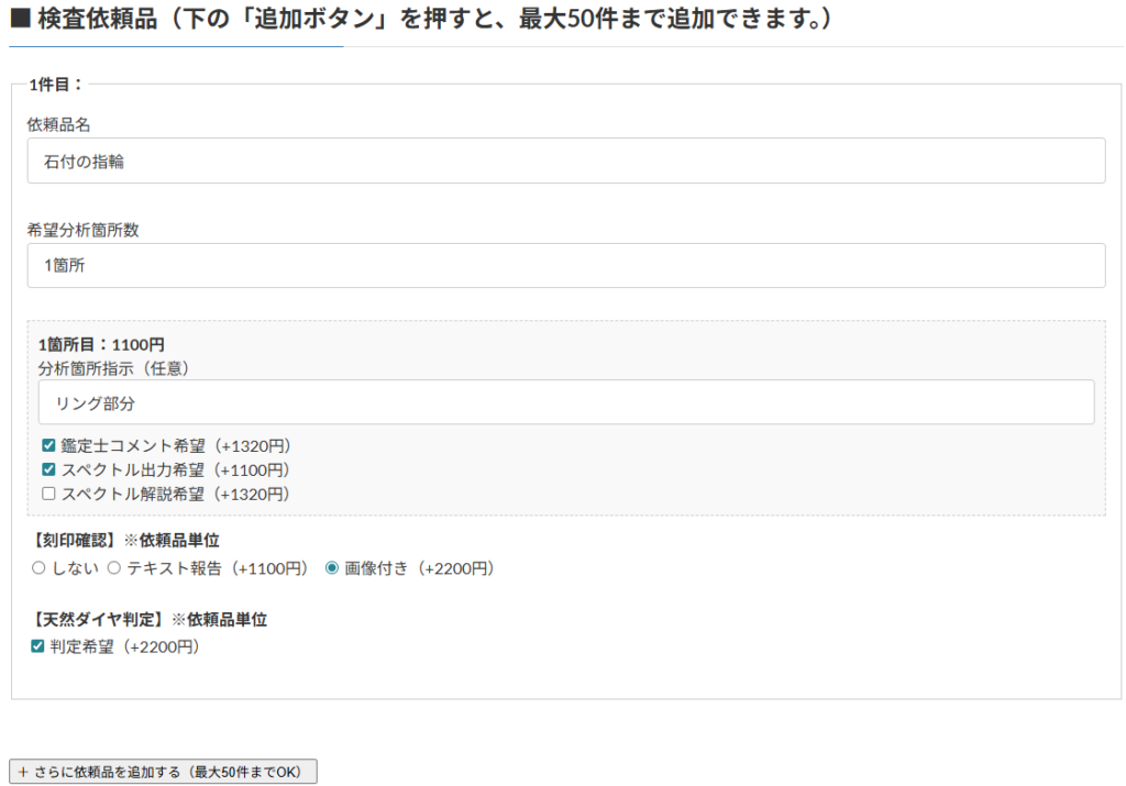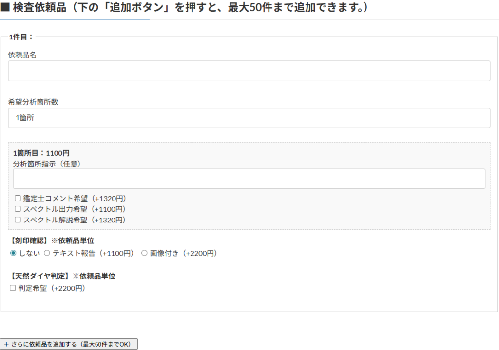 | ※天然ダイヤ判定 | 天然か否かの簡易判定・コメント付き | ❌ | +2200円 |
