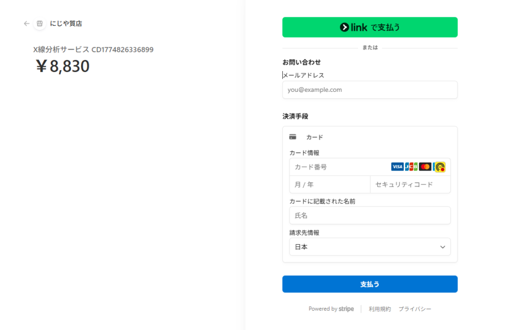 カード情報はすべて、決済代行会社「Stripe(ストライプ)」の安全なサーバー上で管理されます。