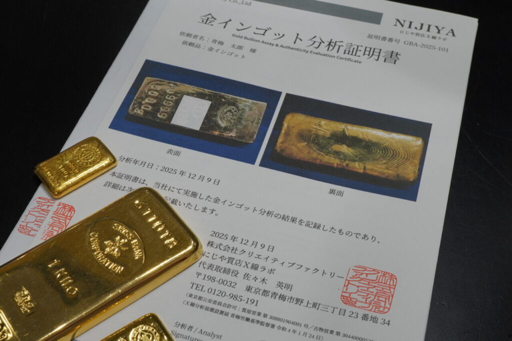 金価格2万円台の今、1kgで数千万円。見た目判断=数千万円リスクです。