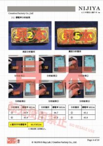 - 当ラボの分析報告書および分析結果は、転売用証明書・販売保証資料・真贋保証資料として使用することを禁止します。