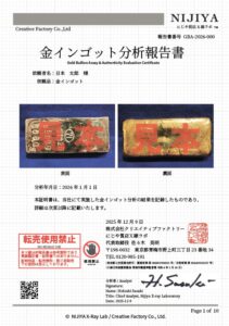 金インゴット・金地金の分析報告書は、相続・資産管理・確認資料としてご活用いただけます。