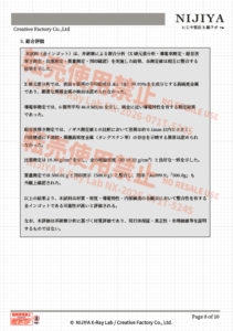 - 当ラボの報告書またはそれに類似する様式を用いて、第三者に対し真正な分析報告書であるかのように誤認させる表示、証明、販売、出品、保証、広告、勧誘等を行うことを禁止します。