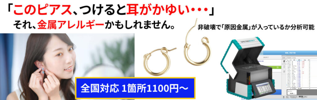 ピアスや指輪などの中にどんなアレルギーの原因となる金属が含まれているかを数値で見える化できます。