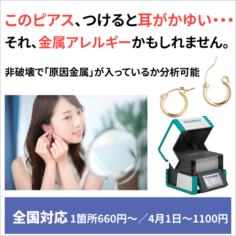 ピアスや指輪などの中にどんなアレルギーの原因となる金属が含まれているかを数値で見える化できます。