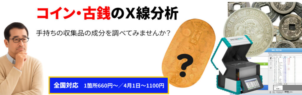 にじやのX線分析なら、大切なコイン・古銭を傷つけずに素材をチェックできます。